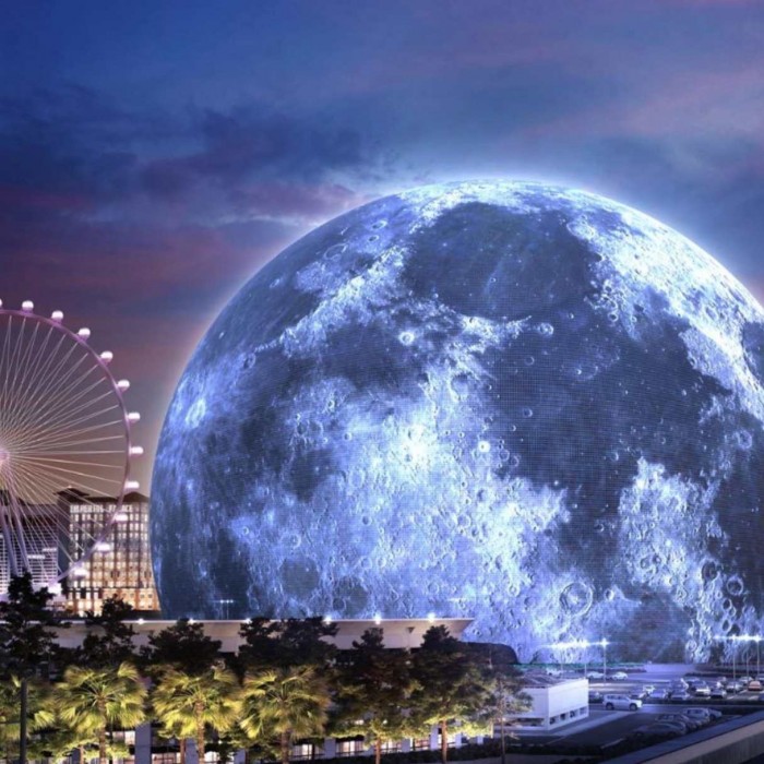 The exterior of the colossal sphere, which is 111 metres tall and 157 metres wide, consists of about 1,2 million pucks, each containing 48 individual LEDs that can display 256 million different colours. Inside, the 18 600-seat auditorium, with an additional 2 400 standing spaces, is equipped with an immersive LED screen that doubles as a ceiling.