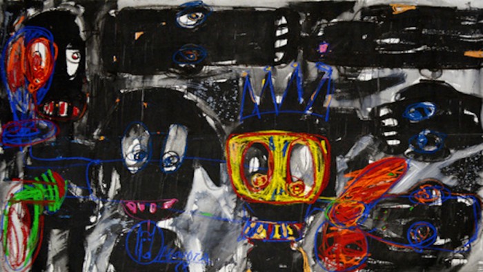 Aboudia's work is unapologetic. Its sinister tone is derived from his experience in 2011 when electoral violence in Abidjan forced him underground. The images borne out of this experience are recorded in the work entitled Daloa 29.