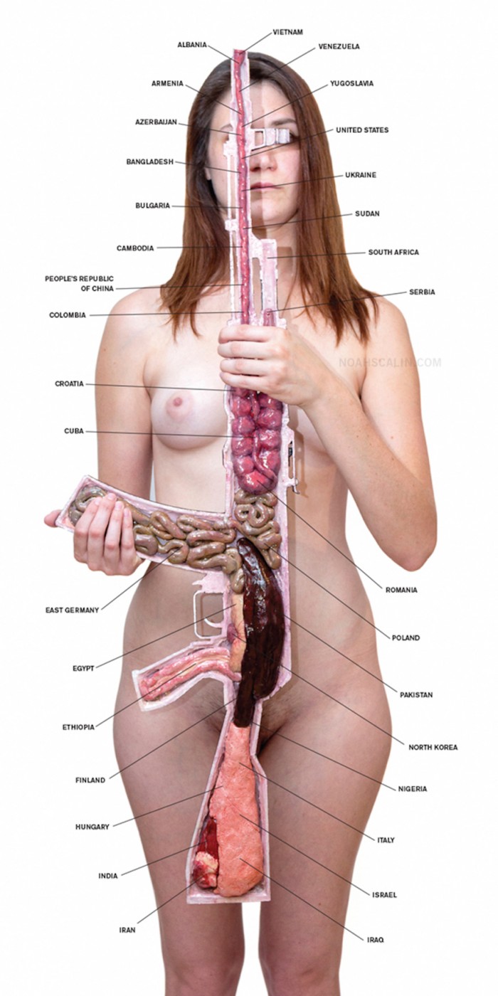Since its introduction into active warfare in 1948, the AK-47 has become the weapon of choice for military personnel, terrorists, and child soldiers. It has become a symbol for combat and guerrilla warfare, one that has seen the deaths of millions if not billions of people worldwide. While a debate rages around the right to own a gun and the regulation of gun ownership, artist Noah Scalin wants to draw attention to the human lives destroyed by these weapons.