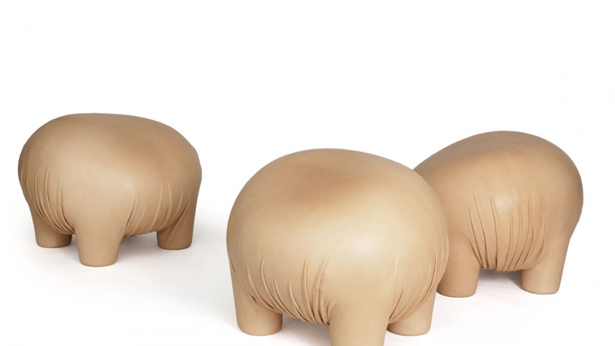 “Anomaly” is a series of seats that resemble an animal’s form, or even perhaps an unknown creature. Designed to awaken curiosity, the seats are made with naturally coloured leather that is stretched over a wooden mould. The foam inside is digitally milled in order to fit the shape perfectly and create a soft and cushy seat.