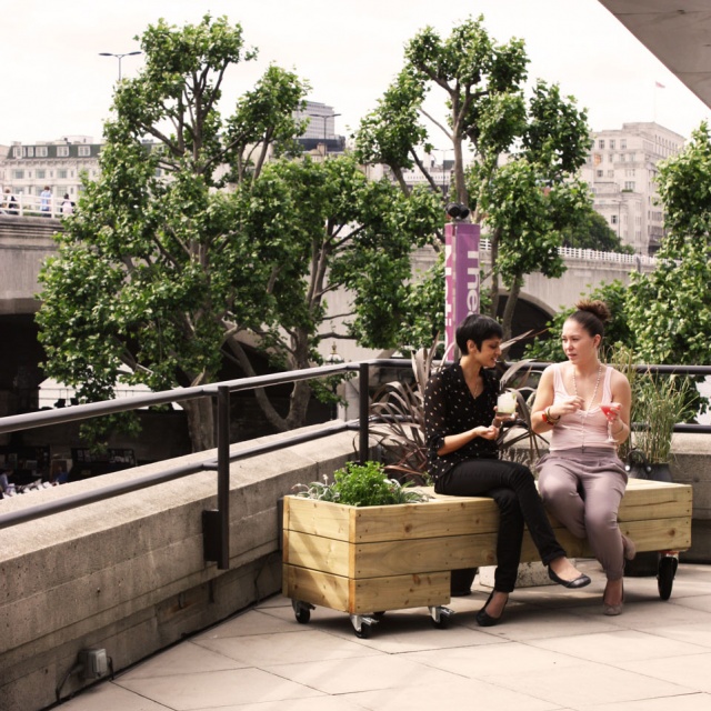 As part of their plan to create a holistic living space the National Theatre in London features a collection of outdoor furniture that responds to the environment in their urban garden on the balcony.