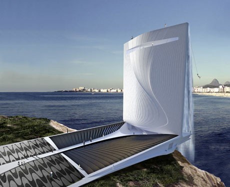 Solar City Tower is a concept that has been proposed by Swiss architects RAFAA. This solar power plant would be built on one of the islands in Guanabara Bay. At 105m above sea level it will become one of the major features of the city.