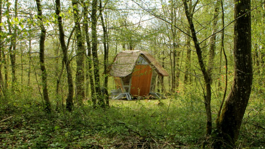 Each house is built around a theme and christened with names like “Chrysalide”, “Brocard”, “Champignon” and “Nichoir”. Blending the inside with the outside, they feature terraces, central rooms and porch swings, all of which allow visitors to blend in with their surroundings while they recharge and experience nature with zero impact.