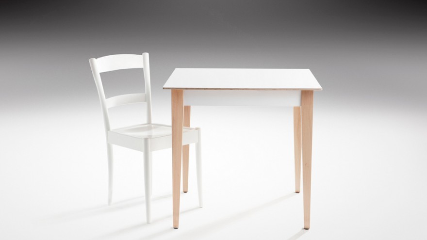Martin and his team had a re-look at the simple kitchen table in contemporary finishes with knockdown fittings. Formica laminated plywood top and apron with elegantly proportioned beech legs. The Globe Table is available in standard sizes 800 x 800mm, 800 x 1600mm, 800 x 2200mm, 800 x 2600mm.