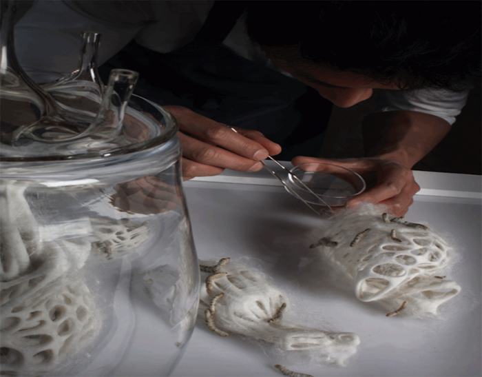 Rethinking the exploitation of silkworms has become the source of many research projects. For MIT's Neri Oxman, who spoke at Design Indaba earlier this year, it was all about looking at the production silkworms undergo. They decided to turn to robotics as a substitute for the work the insect would have to do.