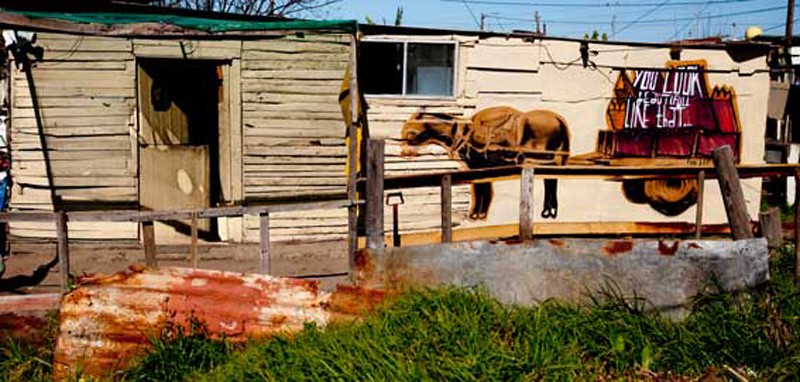 Supported by the Scrutinize HIV awareness campaign, the team delivered sensitive social HIV messages, art-for-art’s sake and positive love to six communities in nine days. Huts, shacks, abandoned buildings, shebeen walls and nursery schools were all covered with colour.