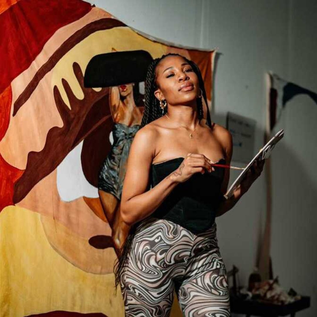Mahlangu made her international debut with an exhibition at the Venice International Art Fair in 2020 and has since exhibited in Birmingham, Ibiza, Finland and Lagos. Most recently, she was selected as the lead visual artist for Grammy-award-winning DJ and producer Black Coffee’s 2022 Hï Ibiza residency for which she created 23 artworks. The highly accomplished Ga-Rankuwa-born artist has been nominated for several awards, amongst them the Arts & Culture Trust (ACT) ImpACT Awards for Young Professionals in 2020. Mahlangu was also listed as one of Mail & Guardian's 200 Young South Africans in the same year.