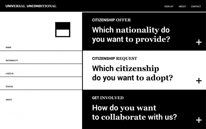 “Universal Unconditional” is designed to curb these limitations. The design is an online platform that connects global participants willing to give up their national identities for a limited time to other people in need. Users could also ask to borrow specific citizen rights to healthcare, asylum, or employment, depending on their needs.