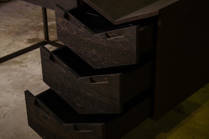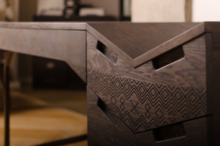 Diamond and chevron shapes are festooned along the sides of the Mvelo Desk, which represent femininity and masculinity working together to create beautiful patterns.