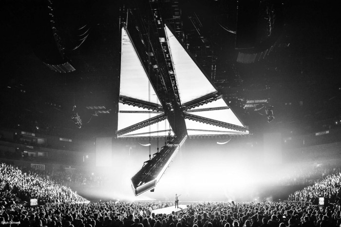 For Adele, the artist’s face, particularly her eyes, became the focal point for the persona the singer had cultivated. For Kanye West, nature and arena combined to create stage sets that reflected the enigmatic rapper’s colossal presence. For The Weeknd, what became important was his journey which Devlin reflected within a massive aeroplane-like structure.