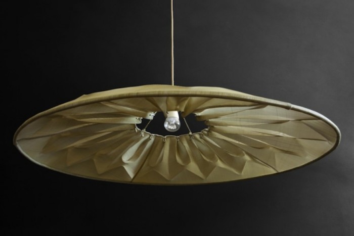 The Fan Lamp is handmade with a fine woven aluminium fabric. For Mema Designs, the choice of material used for its creation was crucial as that set its design apart from other products on the market. The material has a dynamic, reflective characteristic that gives the piece a weightless, veil-like quality. As each design is handmade, no two lamps are identical, making each a collector’s item.