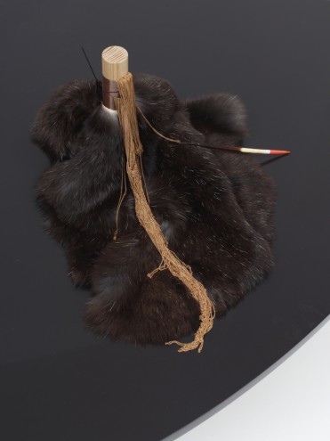 The Entrance Table is the boldest and most complex piece of the collection. The tuft of fur and the clutch of feathers contrast with the polished smoothness of the wood alluding to the cultural identity of Iceland, harking back to primitive cultures, the world of the Inuit. “For me the object steps into a place between reality and fiction. I see it as something emerging from the ocean, having gathered all sorts of objects and materials that have stuck to it or hang from it,” says Sigurðarson.