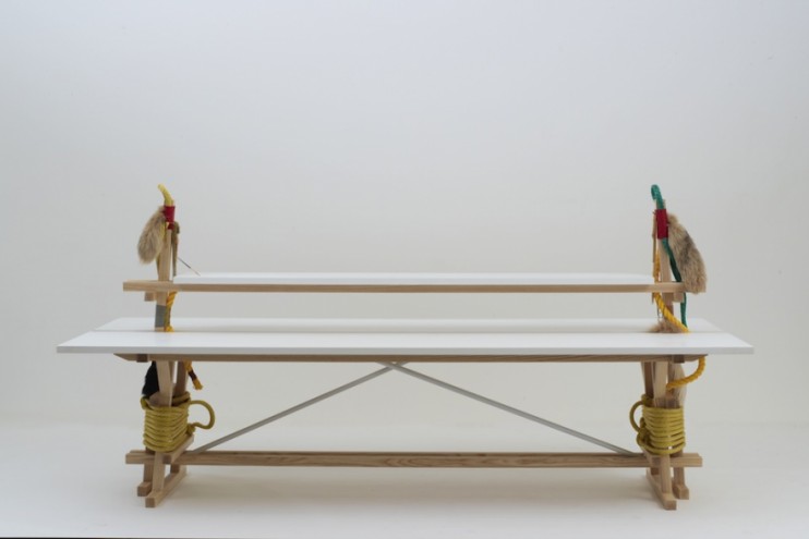 A clutch of feathers, a tuft of fur, colourful rope and an Icelandic craft all come together resembling the mystery of ritual objects for Brynjar Sigurðarson’s latest furniture collection.