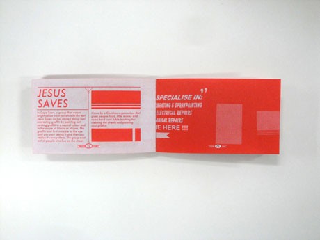 The name of the publication, Goodwill Fernandes, is a hint at the fact that it is a collaboration between writers and designers from both continents. Contents include an interview with Francois van Coke, leader singer of Afrikaans rock band Van Coke Kartel, and a story about a group called “Jesus Saves” that cleans up graffiti in Cape Town with an alternative form of graffiti. There’s also a feature on how Argentina’s government uses graffiti as an effective means of campaigning, even though this art form is illegal in that country, as well as short stories by writers from both countries.