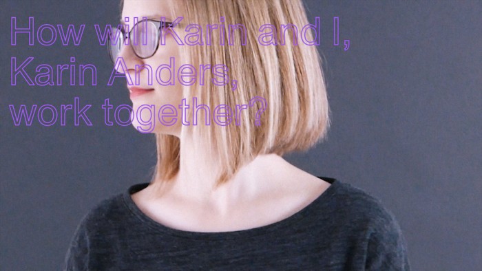 In an effort to gain a better understanding of the future of working in design, “Karin and Karin Anders,” her most recent project, features a series of talks held with experts in which they speculate about what could lie ahead. The series explores how AI could work alongside human intelligence. The 'Karin Anders' of the title refers to Karin’s bot alter ego.