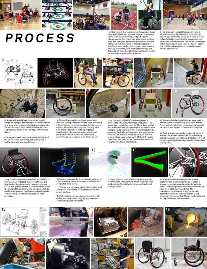 The CrossTrainer Wheelchair is designed to allow for interchangeable front ends to enable disabled youth to play adaptive sports without the need for an additional wheelchair.