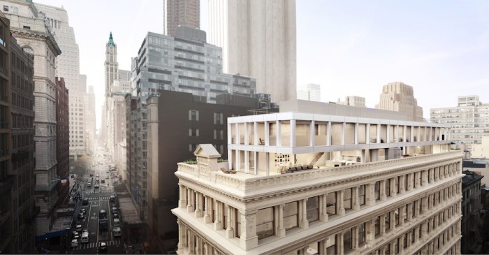 Both four and five-bedroom duplex penthouse residences capture expansive city views. Ban employs a steel cantilevered Vierendeel truss to create the illusion, from street level, that the penthouses are floating, integrating it seamlessly with the existing structure.