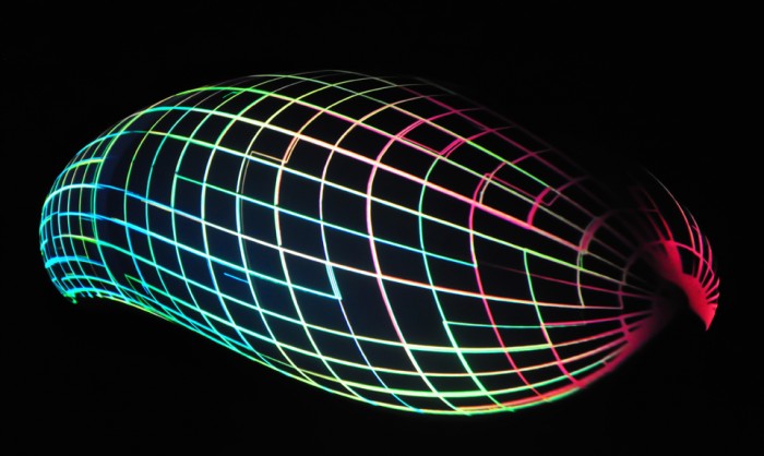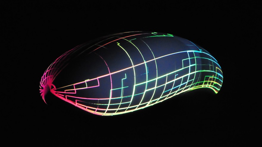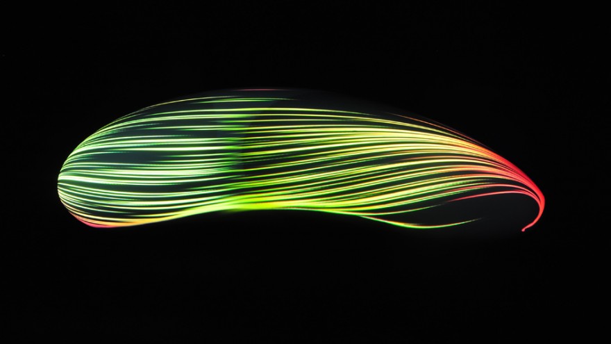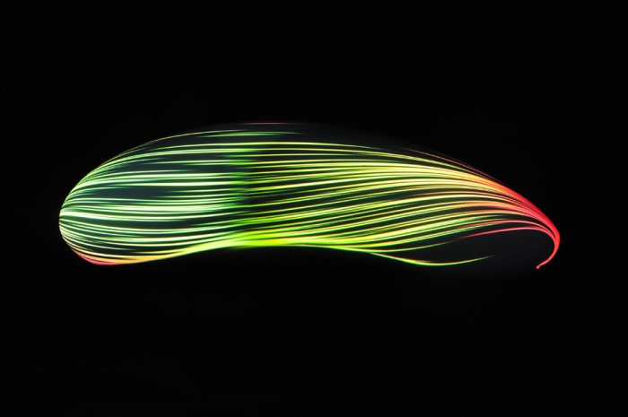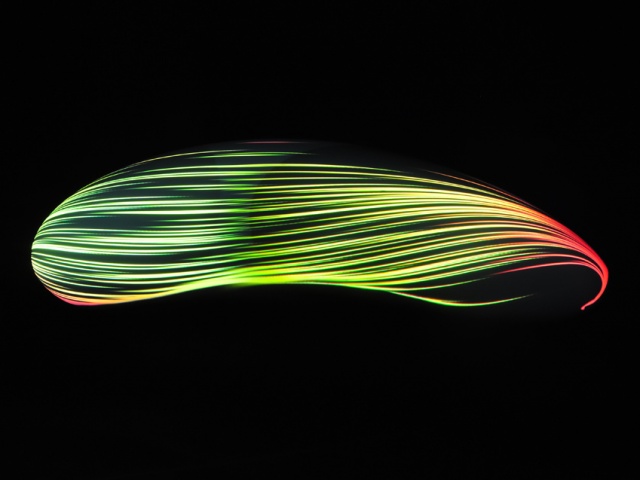 A series of sketches done by the British designer are merged together and projected through a video using colourful light beams to reveal the outline of a car. The length and width of the light beams vary to capture the illusion of movement. Audio sounds are played around the car to further strengthen the idea and sensation of speed.