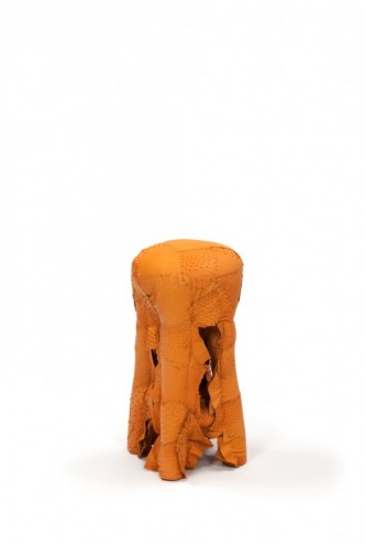 The Campana Brothers, known for their interest in experimenting with new materials, incorporated the ostrich leather into every day pieces like stools, table and necklaces. All the objects underline the many applications of this noble material.