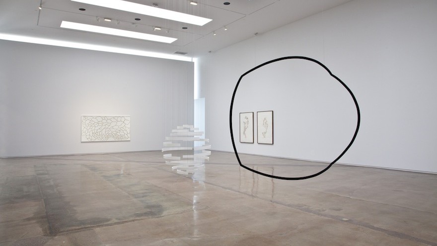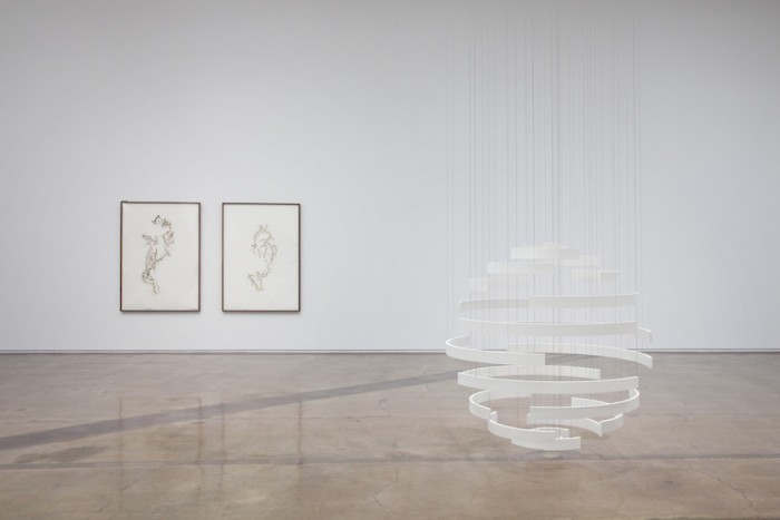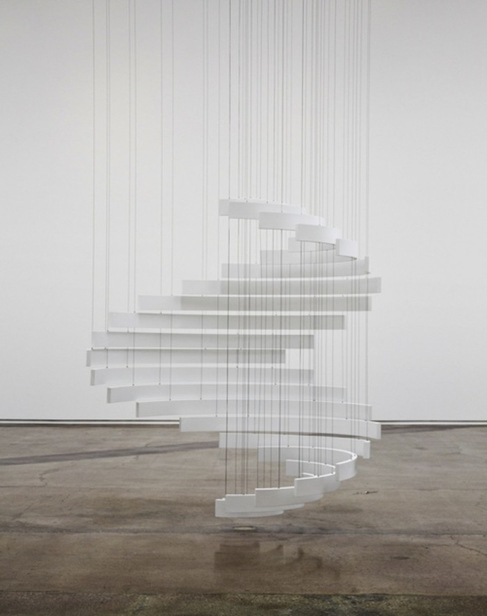 “The Sum of All Possibilities” is a sculpture suspended from the ceiling that appears to be spiralling towards the floor in an infinite swirl. The piece “highlights the close and paradoxical relationship between time and perception, movement and finitude, form and flux”, according to the Los Angeles Kohn Gallery where the exhibition is being held.