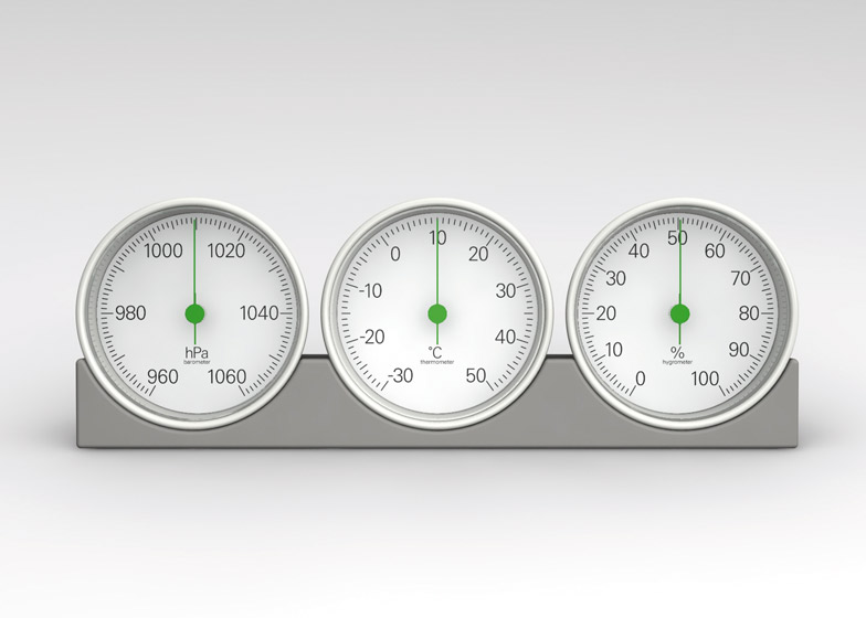 Naoto Fukasawa has designed an elegant set of dials allowing anyone to monitor air temperature, pressure and humidity from wherever they are.