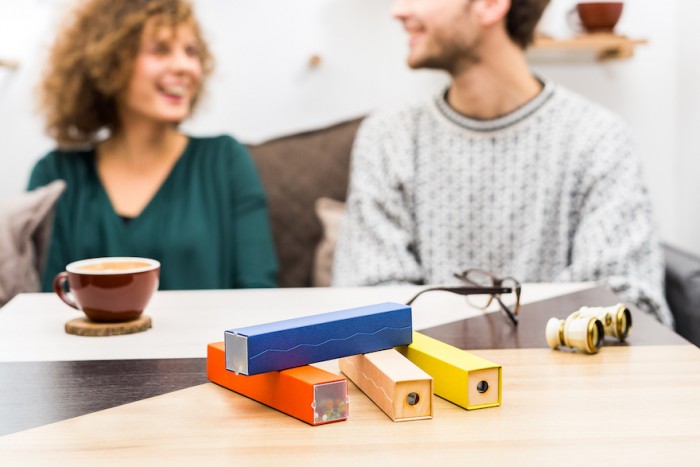 In this digital world, much of our communication happens through a screen. The Paperscope allows you to send something tangible to your friends and loved ones, and for them to turn any small object or keepsake into an explosion of colour. According to the designers, the early users of the postcard-kaleidoscope so far have reacted in quite an emotional way.