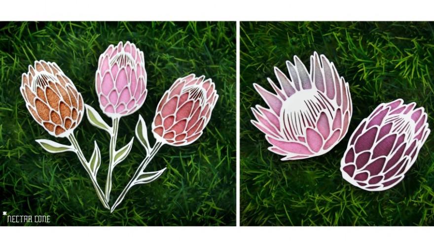 The brooches reflect symmetrical patterns, with nature as one of the main inspirations for the range. Botanical drawings of plants and flowers are especially inspirational in the Trinket range.
