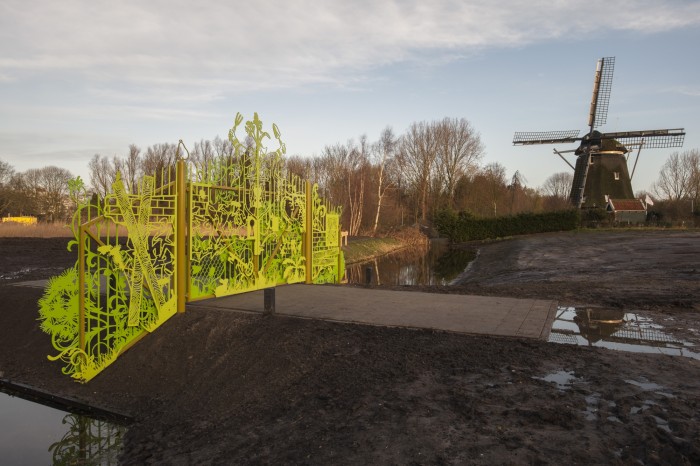 The gates stand eight-meters wide and four-meters tall and become a portal, ushering people from the urban Amstel to the historical landscape beyond.