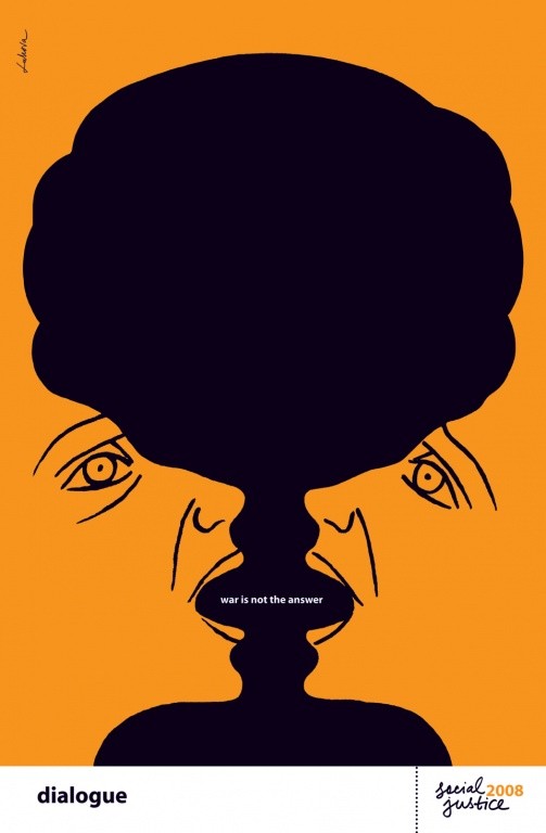 Addressing issues such as censorship, ecology, health coverage, corruption, economic inequality and war, the bold images synthesise months of research and doodles. With an innocent humour and supreme economy of form, the posters transcend language and culture, requiring no explanation. Singularly striking, the images pluck an unconscious chord with the viewer