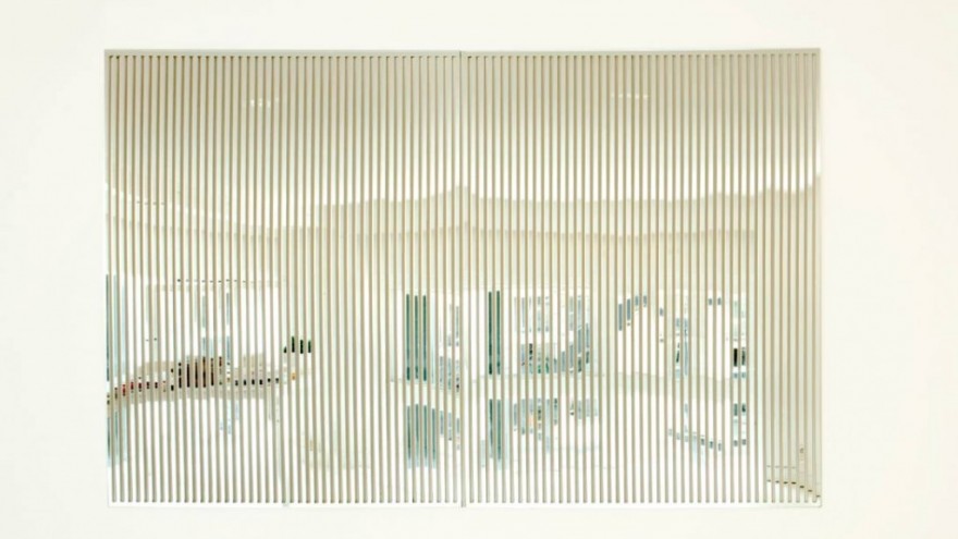 Designed for French company Domestic, the mirror consists of self-adhesive PMMA strips arranged on a wall.