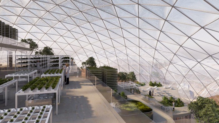 The development, which will first break ground on Earth, is designed by Danish architect Bjarke Ingels. It will cover nearly 177,000 square meters of the Emirati desert.