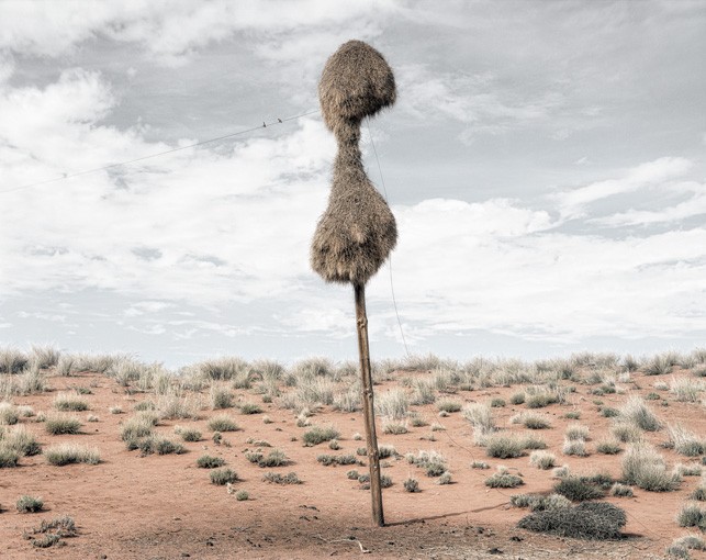 Like his Assimilation series, which looks at the nests of the Sociable Weaver Birds in the vast landscape of the southern Kalahari. Marsh explains that these birds take ownership of the telephone poles in their habitat, building their nests on and around the poles. “The twigs and grass collected to build these nests combine to give strangely recognisable personalities to the otherwise inanimate poles.”