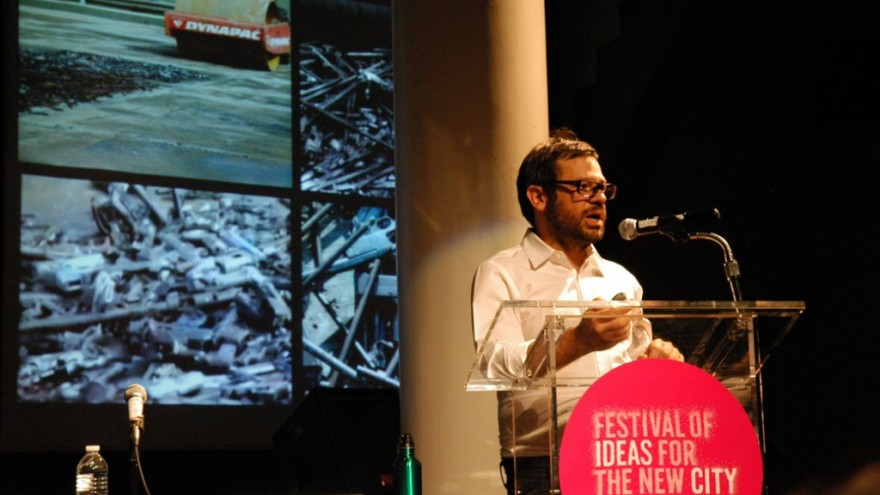 Pedro Reyes, architect and artist, started by showing us a collection of projects he calls “Ideas”. They ranged from monument designs, in which the monument was a platform for citizens to become the spectacle, to semi-trucks that converted into public forums. In Idea #1, Reyes questioned the museum, by creating museums into ovens “where we are cooking reality instead of fridges storing the existing”. This would make museums an agent of transformation. Idea #2, which received a well-deserved round of applause, created a campaign to invite the population of weapon holders in Mexico to exchange their weapons for coupons to a well-known art collector’s supermarket, where they could purchase a fridge, microwave or other needed items. Reyes then took a total of 1 537 weapons, melted them and turned into 1 500 shovels which were used to plant trees across Mexico. This was one positive way to reconfigure a city.