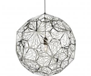 Tom Dixon's lastet pendant light alludes to a spider's web spun with steel.