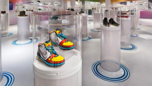 Karim Rashid has designed the exhibition space for the "Out of the Box" exhibition, showcasing the history of the sneaker.
