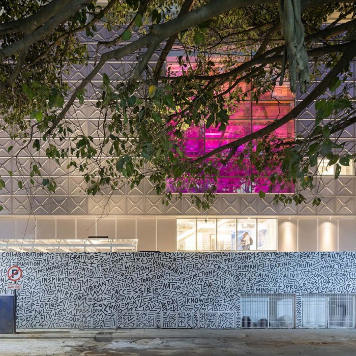 The brainchild of philanthropist and avid art collector Abishek Poddar, the five-floor building that gets bigger with each rising storey was designed by Mathew & Ghosh Architects. It's host to five galleries, a 130-seat auditorium, a museum shop, an art and research library, a specialised research and conservation facility, and an education centre. The facade of the building is covered in steel panels embossed with a cross pattern that turns into a unique shimmering reflection of the cityscape.