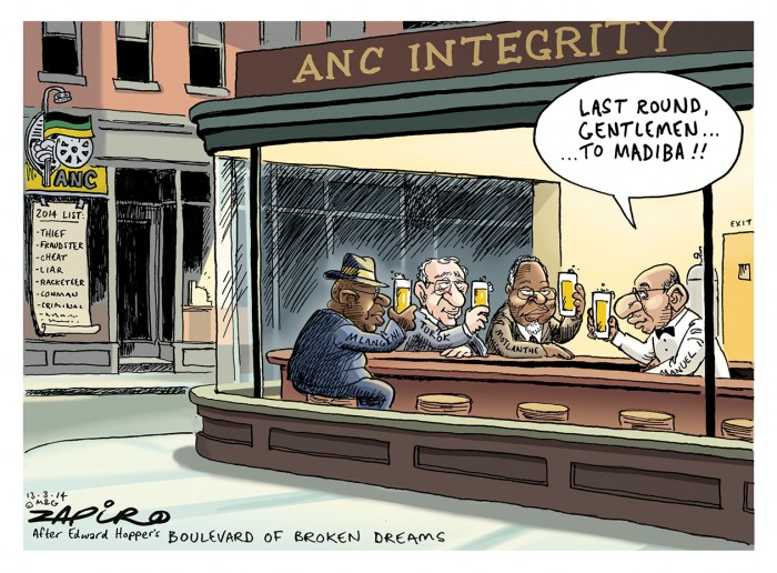 The compilation records the extraordinary South African journey over the past two decades since the landmark election of 1994 through the eyes and sketch pen of Jonathan Shapiro.