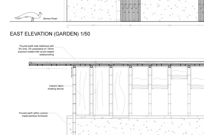 The studio proposes building with bamboo, an inexpensive and abundant material in Ghana. Their plan encompasses approaching government organisations such as the Bamboo and Rattan Development Program (BARADEP) to donate bamboo that will be planted along the boundaries of the properties, creating living walls that provide each family with privacy and security.