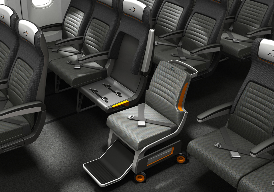 Air Access is a concept that aims to reduce the indignity and discrimination that PMRs face when travelling by air. The concept comprises two elements; a detachable wheelchair that allows the passenger to be transported on and off the plane without discomfort, and a fixed frame isle seat on the aircraft, which the wheelchair is mated to create a regular airline seat.