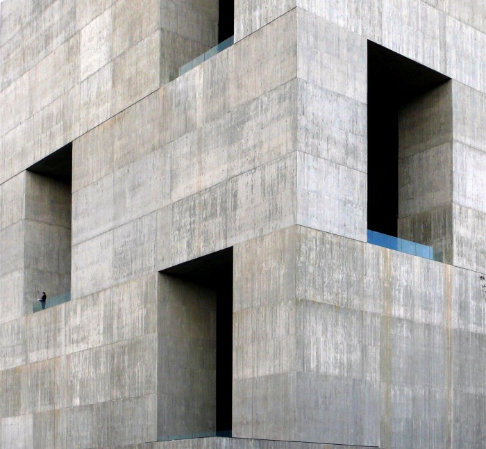 Standing 11 stories high, the building demands attention. From the outside, the concrete tower is inverted with open recessions and protruding plazas that almost resemble a Jenga tower, mid-play. Inside lies a heart of glass, as transparent windows, doors and walls hide within the concrete to not only provide natural ventilation and light, but to reduce radiation levels as well.