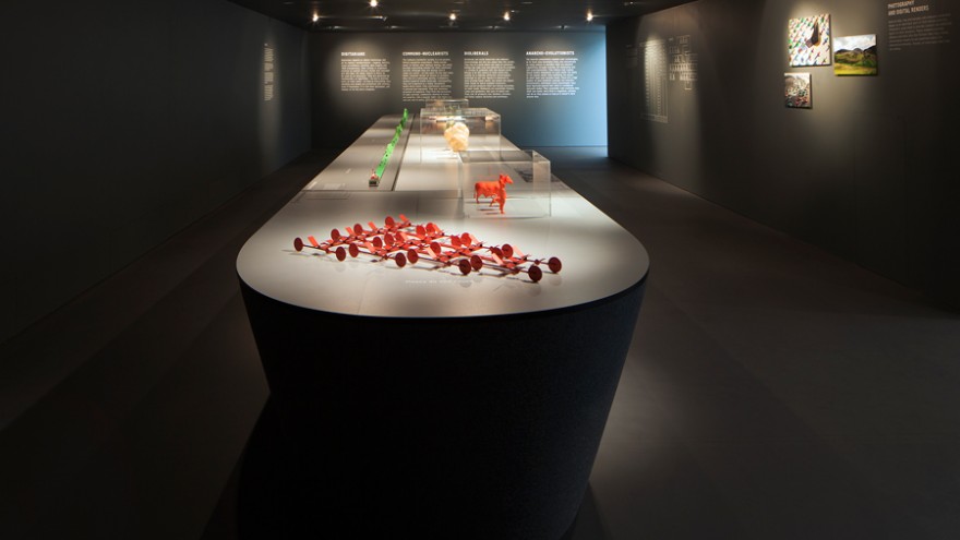 The duo borrow methods from literature and art to use in experiments that apply to the real world. In doing so the exhibition looks at the social, cultural and ethical implications of emerging technologies.
