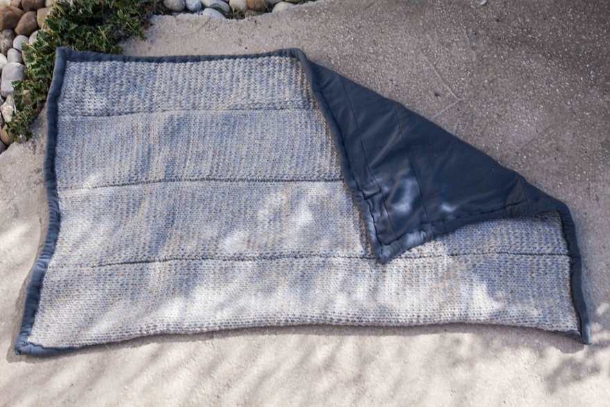 ENTRELAC provided Kassisieh with an opportunity to demonstrate some of the intricate techniques she developed through her experimentations with knitwear. Consisting of many hand-knitted strands and woven as a single cross stitch piece, 20 Jordanian women were involved in its construction, cutting and stitching by hand from their homes to complete it. The same women were again recruited to assist in its transformation, dismantling it themselves and turning it into 38 individual blankets that were distributed to Syrian refugees and needy Jordanian families.