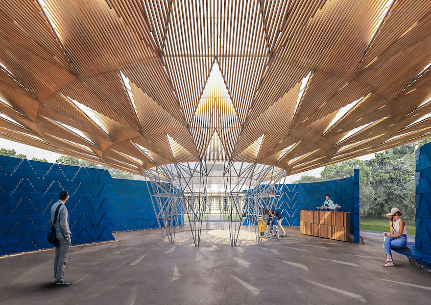 The Serpentine Galleries state that Kéré responded to the Pavilion brief with a bold, innovative structure that brings his characteristic sense of light and life to the lawns of Kensington Gardens.