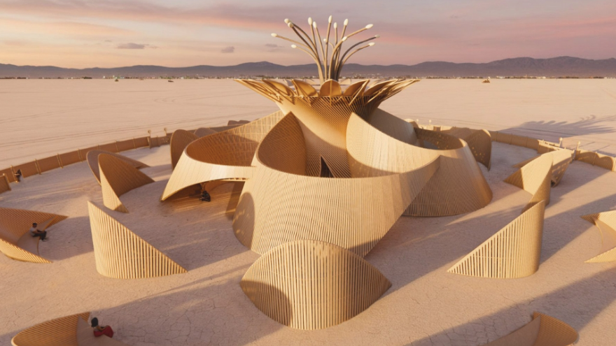 The structure invites visitors to move slowly inward through layered “petals” and alcoves, spaces intended for reflection, mourning, gratitude or quiet contemplation. As with all Burning Man temples, the space serves as a communal canvas where participants leave messages, photographs and offerings for loved ones. The temple’s final act will be a silent ceremonial burn, physically and metaphorically releasing these memories into ash, reinforcing the event’s ethos of impermanence and collective catharsis.