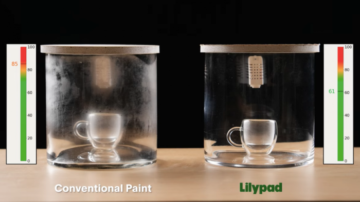 The paint’s material design represents a shift in how we conceive finishes. Instead of inert surface treatments, the paint functions as a living membrane, adapting to environmental fluctuations. Its chemistry draws on responsive polymers that have appeared in smart textiles and has a broad potential for impact. In climates with large daily or seasonal humidity swings, LilyPad can significantly improve thermal comfort, air quality and occupant wellbeing. It also reduces reliance on mechanical HVAC intervention, offering architects and interior designers a climate-responsive tool that aligns with sustainability goals.