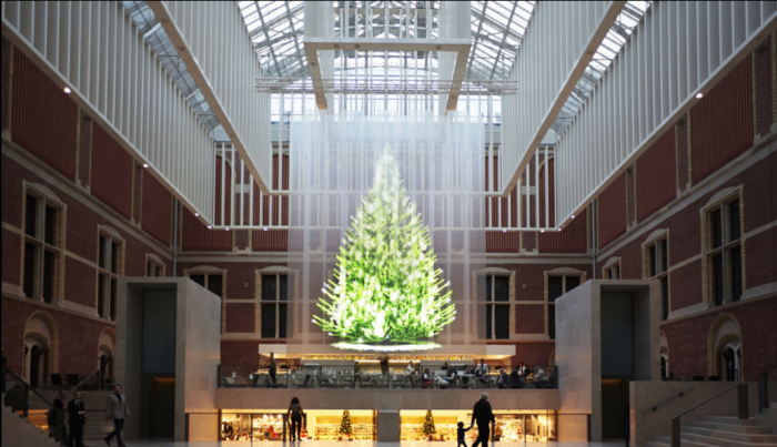 Animating the entrance hall of the Rijksmuseum and lifting visitors' holiday spirits the holographic Tree of Light by Droog reimagines the traditional Christmas tree.