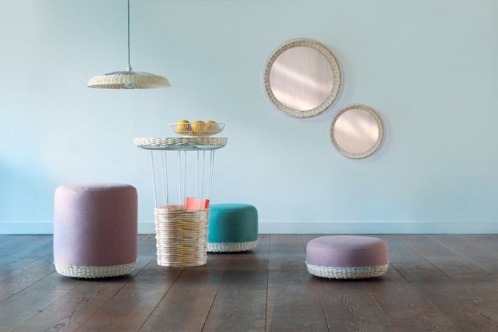 Dutch designer Sep Verboom’s Liveable Products range, also at Ventura Lambrate, investigates and merges traditional craft, reuse of waste materials and contemporary design. His latest range – the Rope Hope lamp and stool – is inspired by an enterprising group of rope-makers in the Philippines who rehabilitate old shipping ropes and sell them anew. His Fantasized range, launched at Milan last year, includes lamps, bowls, pouffes, tables and mirrors made from electric fans purchased at junkshops around Cebu City in the Philippines, known for its wicker industry. The used fan guards are combined with traditional weavings by local craftsmen. Verboom’s aim is to stimulate the local economy and provide a liveable future for the crafters, while at the same time producing a forward-thinking range of contemporary design products.