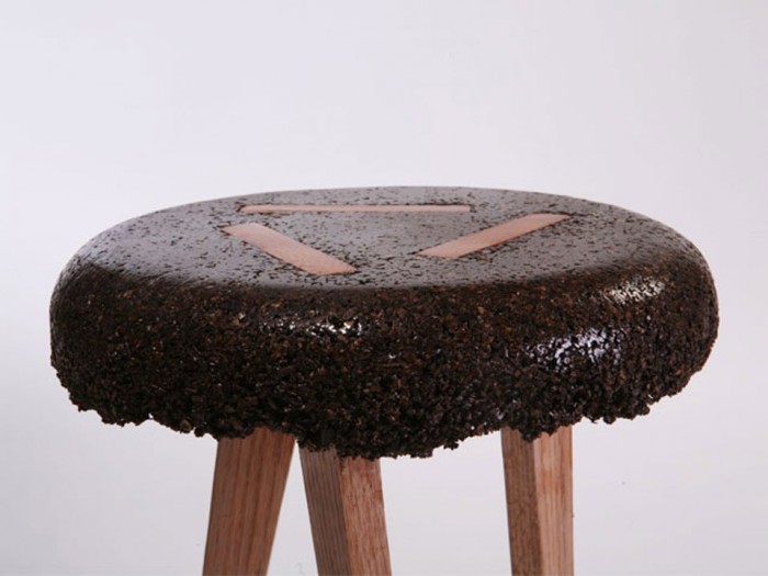 Israeli designer Yoav Avinoam’s “Shavings” collection of stools and tables use recycled sawdust to create furniture with unconventional visual appeal.
