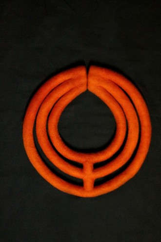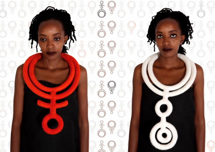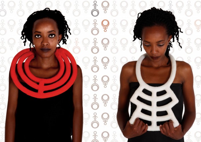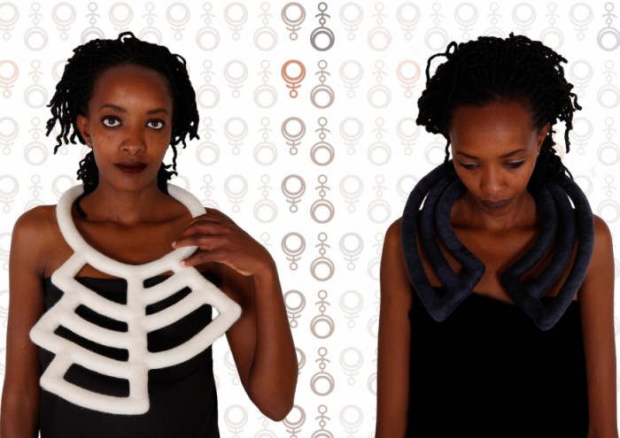 At Design Indaba Expo 2015, Uys will be exhibiting her product range, Afri-Garde, which was created as part of her thesis. It is a collection of hand-felted, African Ndebele-inspired neckpieces that acknowledge their traditional origins while also creating a new aesthetic. The organic felt material contrasts with the modern geometric shapes of the pieces.