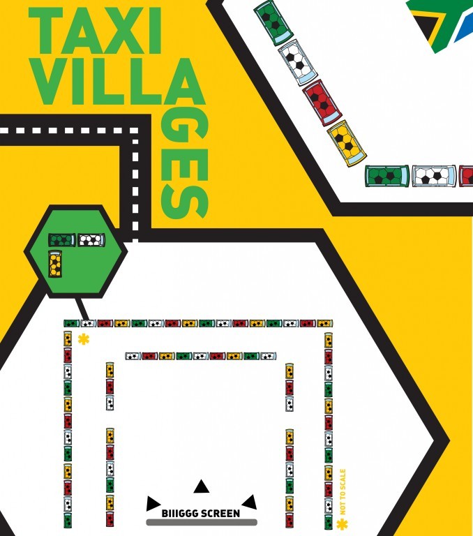 There will be seating areas where tourists can rest their feet and watch replays of previous matches on plasma screens, while enjoying a braai and some cold beer. The audio from the matches will be broadcast via FM radio to the taxis around the venue, so that we have synchronised surround sound throughout the day. Inside the taxis themselves, we’ll have cameras streaming live footage to the big screens of individual parties happening inside them before the game itself begins. The kwaito will be pumping and the people will be jumping.
